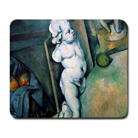 Paul Cezanne is one of the greatest French artists of all time. Paul Cezanne's work continues to display a mastery of design, color, tone and composition. His sensitive, compassionate and exploratory brushstrokes are highly characteristic and clearly recognizable. Cezanne's Still Life with Cherub is one of the most appreciated works of his entire collection ever painted. You can now own Paul Cezanne's Still Life with Cherub on this mouse pad! The mouse pad that displays the painting of Still Life with Cherub measures at 9.5 x 8 inches and is machine washable.